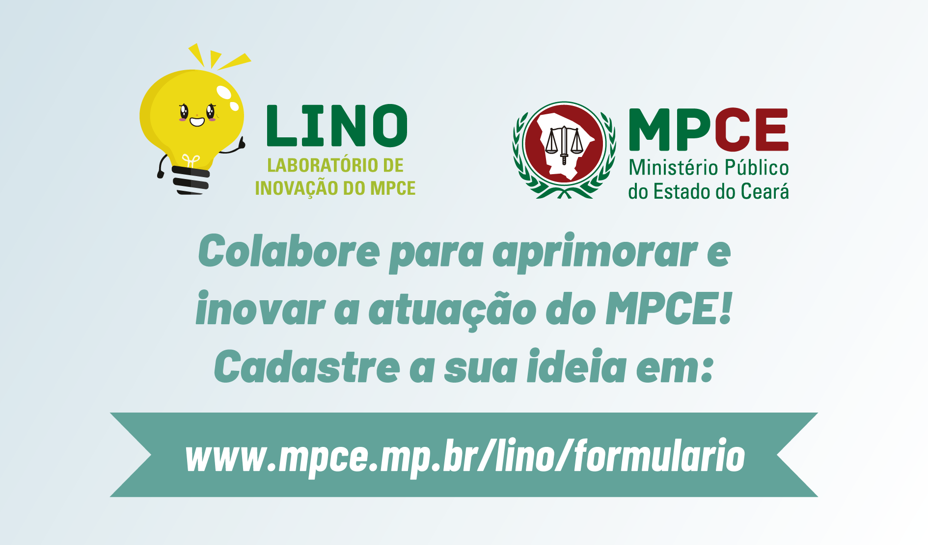 O Ministério Público do Estado do Ceará (MPCE) convida toda a população, além dos membros, servidores e estagiários da instituição, a colaborar com sugestões para o banco de ideias do Lino, o Laboratório de Inovação. Criado no início deste ano, o órgão pretende ser um espaço inovador e colaborativo que proporcione o desenvolvimento de soluções criativas para os desafios do Ministério Público cearense.