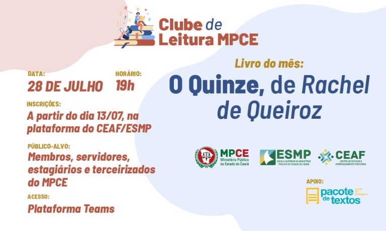 Com o objetivo de fomentar a cultura e perpassar o interesse pela leitura, o Ministério Público do Estado do Ceará (MPCE), por meio do Centro de Estudos e Aperfeiçoamento Funcional (CEAF) e da Escola Superior do Ministério Público (ESMP), lança o Clube de Leitura MPCE. Tendo como escopo a leitura de livros em geral, abrangendo, em especial, […]