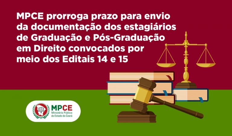 O Ministério Público do Estado do Ceará (MPCE), por meio do Núcleo Gestor de Estágio (NUGE), prorrogou, nesta quarta-feira (08/09), o prazo para envio da documentação pelos estagiários de Graduação e Pós-Graduação em Direito convocados por meio dos Editais nº 14/2021/NUGE e 15/2021/NUGE. Agora, os convocados terão até o dia 15 de setembro para encaminhar os documentos exigidos […]