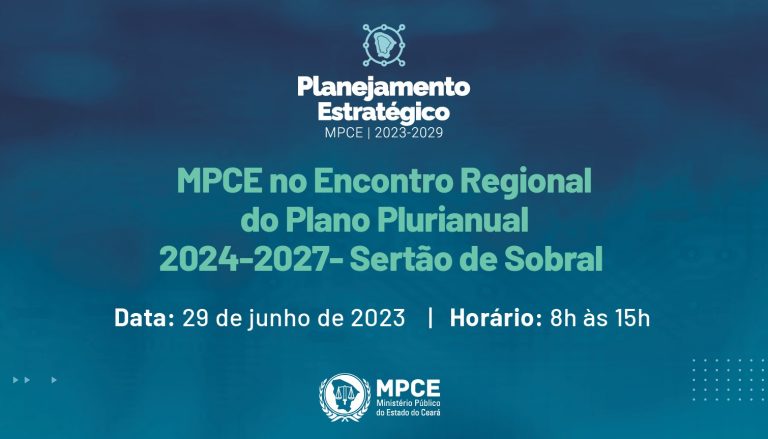 O Ministério Público do Estado do Ceará (MPCE) participará nesta quinta-feira (29/06) de mais um encontro do Plano Plurianual (PPA) 2024-2027, no eixo Segurança Pública e Justiça. Desta vez a atividade será no município de Sobral, na Escola de Saúde Pública Visconde de Sabóia, das 8 às 15 horas. A ideia é que a instituição colabore com o suporte e conhecimento técnico […]