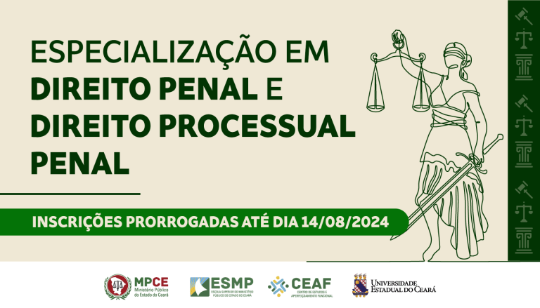 Foram prorrogadas até o dia 14 de agosto as inscrições para a Especialização em Direito Penal e Direito Processual Penal promovida pela Universidade Estadual do Ceará (UECE) em parceria com a Escola Superior do Ministério Público (ESMP) e com o Centro de Estudos e Aperfeiçoamento Funcional (Ceaf). O curso é destinado a membros e servidores […]