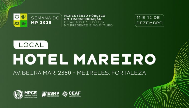 Estão abertas as inscrições para a edição de 2025 da Semana do Ministério Público (SMP), que acontecerá nos dias 11 e 12 de dezembro, no Hotel Afago Mareiro da Avenida Beira-Mar, em Fortaleza, com o tema “Ministério Público em transformação: Desafios da Justiça no presente e no futuro”. Os painéis e as palestras abordarão temas […]