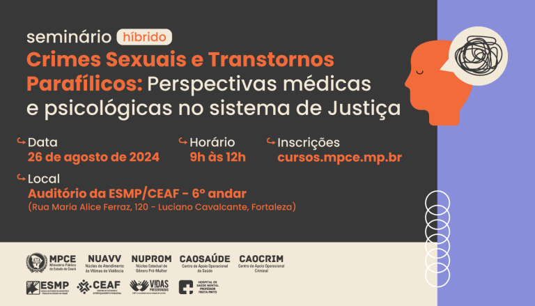 O Ministério Público do Estado do Ceará irá promover, nesta segunda-feira (26/08), o evento “Crimes sexuais e transtornos parafílicos: perspectivas médicas e psicológicas no Sistema de Justiça”. O encontro ocorrerá entre 9h e 12h, no auditório da Escola Superior do Ministério Público, no bairro Luciano Cavalcante, em Fortaleza, com transmissão on-line, via plataforma Microsoft Teams. […]