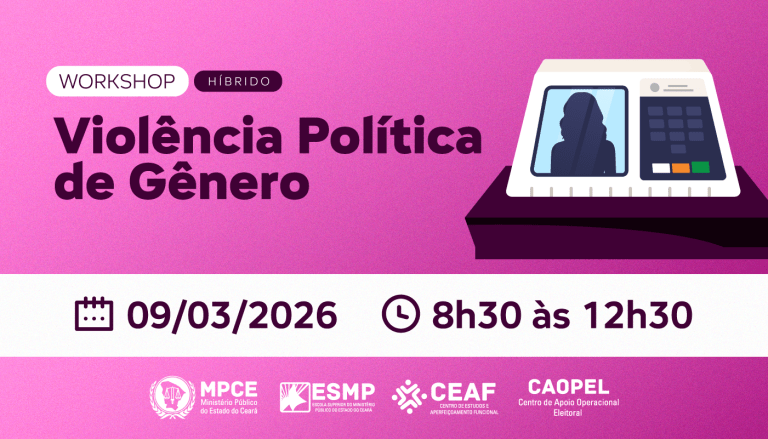 O Ministério Público do Ceará realiza, nesta segunda-feira (09/03), das 8h30 às 12h30, o workshop “Violência Política de Gênero”, promovido pelo Centro de Apoio Operacional Eleitoral (Caopel) e pelo Centro de Estudos e Aperfeiçoamento Funcional (Ceaf), com apoio da Escola Superior do Ministério Público (ESMP). O evento, aberto ao público, ocorrerá no auditório da ESMP, em Fortaleza, e terá transmissão pelo Microsoft Teams. As inscrições estão […]