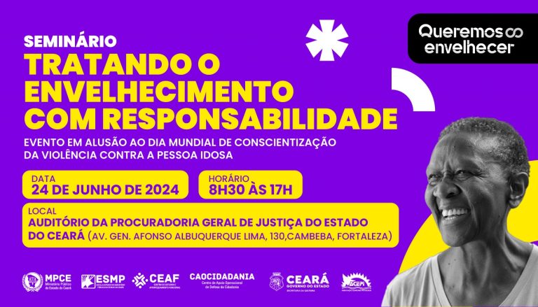 O Ministério Público do Estado do Ceará, por meio do Centro de Estudos e Aperfeiçoamento Funcional (Ceaf) e do Centro de Apoio Operacional de Defesa da Cidadania (Caocidadania), com apoio da Escola Superior do Ministério Público do Estado do Ceará (ESMP), irá promover o Seminário “Tratando o Envelhecimento com Responsabilidade”. O evento, que é aberto […]