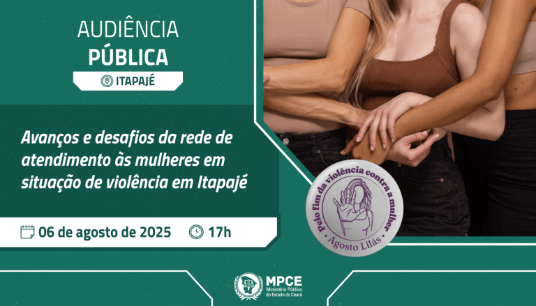 O Ministério Público do Ceará realizará nesta quarta-feira (06/08), às 17h, audiência pública que discutirá os avanços e desafios da implementação do Projeto Rede Mulher em Itapajé. O encontro, promovido pelas 1ª e 2ª Promotorias de Justiça de Itapajé, em parceria com o Núcleo Estadual de Gênero Pró-Mulher (Nuprom), ocorrerá na Câmara Municipal da cidade […]