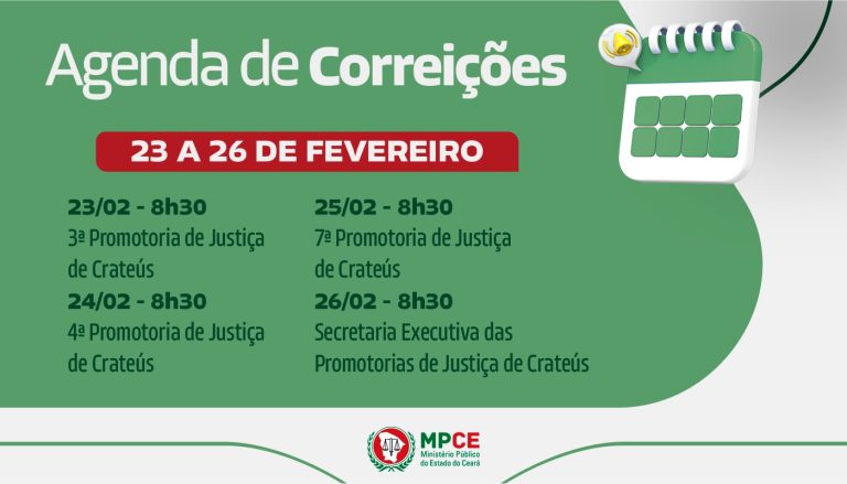 A Corregedoria-Geral do Ministério Público do Ceará realiza, entre os dias 23 e 26 de fevereiro, visita às Promotorias de Justiça e à Secretaria Executiva das Promotorias de Justiça de Crateús. A ação faz parte das correições ordinárias realizadas pelo órgão, que buscam verificar o amplo funcionamento das unidades, cargos e/ou serviços do MP do […]