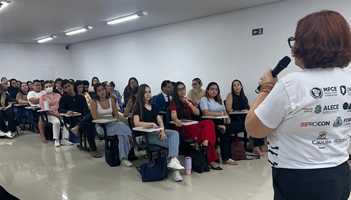 O Programa Estadual de Proteção e Defesa do Consumidor (Decon), do Ministério Público do Ceará, promoveu nessa terça-feira (10/03) uma aula magna com o tema “Bets, Vulnerabilidade Digital e Defesa do Consumidor” para estudantes do curso de Direito da Faculdade Christus, no Eusébio. A atividade, ministrada pela secretária-executiva do Decon, promotora de Justiça Ann Celly Sampaio, buscou aproximar os estudantes da atuação institucional do Ministério Público na defesa dos direitos dos consumidores, apresentando instrumentos de proteção coletiva e mecanismos de fiscalização adotados pelos órgãos que integram o Sistema Estadual de Defesa do Consumidor. Durante o encontro, também foi assinada nota técnica que analisa os impactos das apostas on-line e os riscos associados à expansão desse mercado no Brasil.