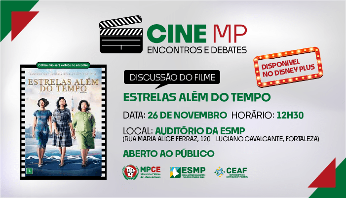 A história real de três matemáticas afro-americanas que enfrentaram o racismo e o machismo e se tornaram fundamentais durante a corrida espacial nos anos 60, auge da Guerra Fria. Este é o enredo do filme “Estrelas além do tempo”, obra escolhida para debate do próximo Cine MP, em 26 de novembro, Mês da Consciência Negra. A atividade, promovida pela Escola Superior do Ministério Público (ESMP) e pelo Centro de Estudos e Aperfeiçoamento Funcional (Ceaf), ocorrerá a partir das 12h30 no auditório da ESMP, na sede das Promotorias de Justiça de Fortaleza.